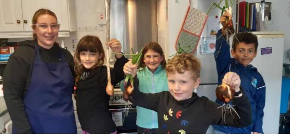 Many thanks to the parent volunteers who are working hard to develop the garden areas around the school. While the harvest was small, onions that were planted last summer were used by the afterschool to make dinner recently.