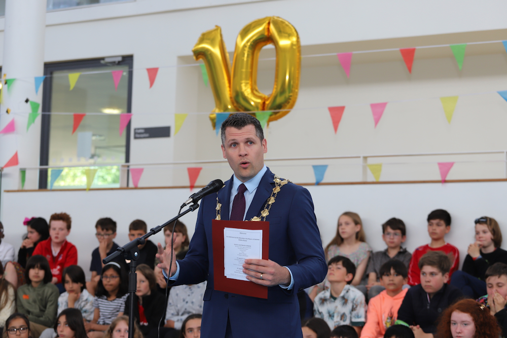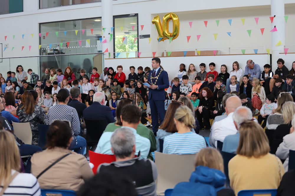 We had a fantastic celebration to mark the school’s 10th Birthday on Wednesday, 19th June. First we had an incredible assembly. Thanks to Mayor Eddie Hoare and Councillors Donal Lyons and Alan Curran for attending. This was followed by an amazing party at the school with the sun shining.