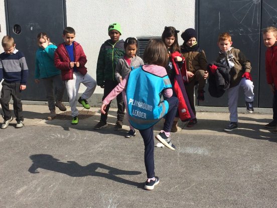 We received new yard leader jackets.  Children from each class rotate the responsibility for leading the active line at the end of the first break.  A new group of activities have been chosen by the committee for the month of April.