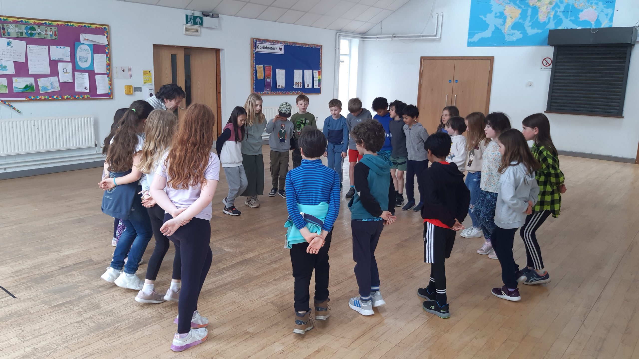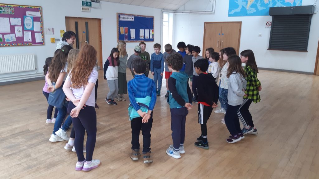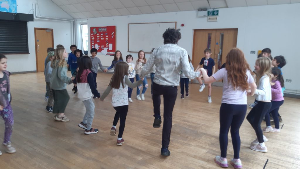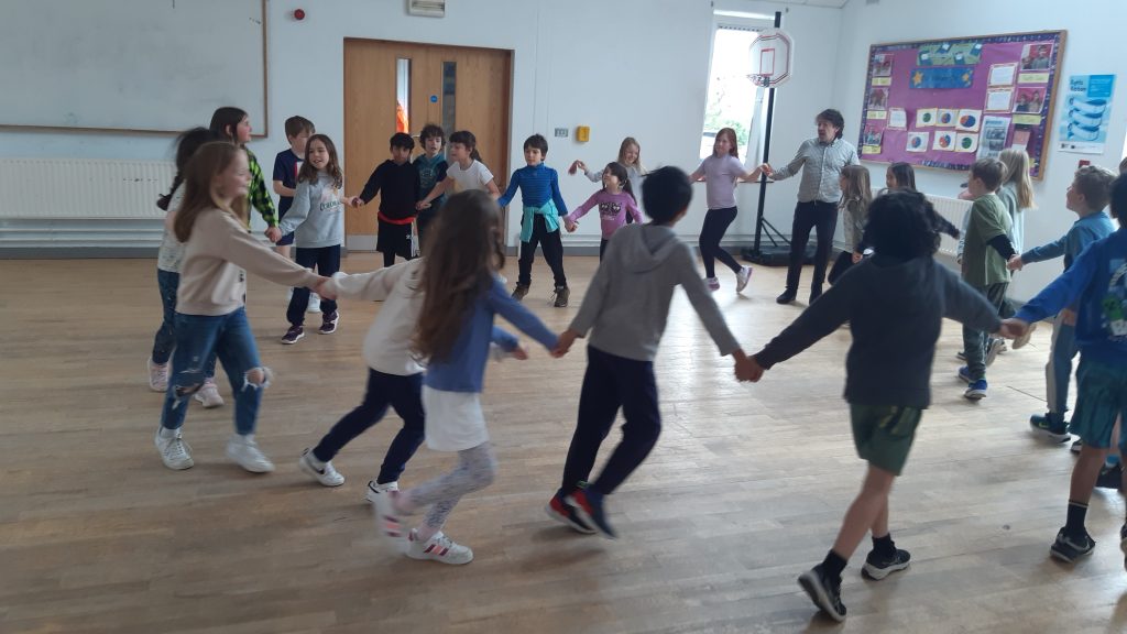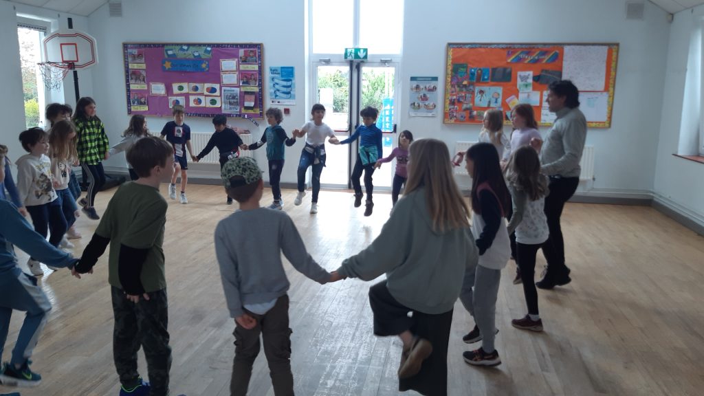 As part of Active School Week and to further our work on the Dance Strand, Matt taught a range of folk dances to all the classes, everything from An Damhsa Mór to Bela Kawé (from the Caribbean) to disco and country line dances. Classes also learned dances from Serbia, Romania, Israel and the United States. It was great exercise, with everyone getting their heart rates up and having a lot of fun as a group of people dancing together.