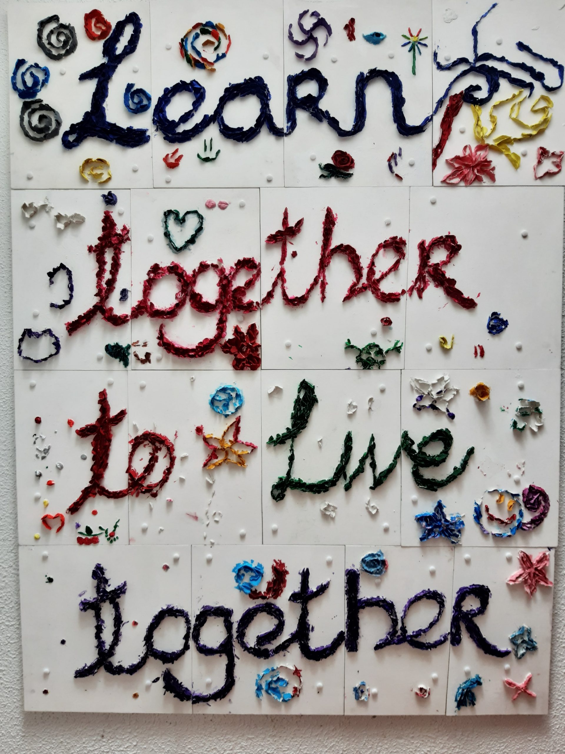 Last year two classes worked with Críona Scannell to create a beautiful piece of art that demonstrates our school ethos. It is now finally up in the school opposite Third Class.