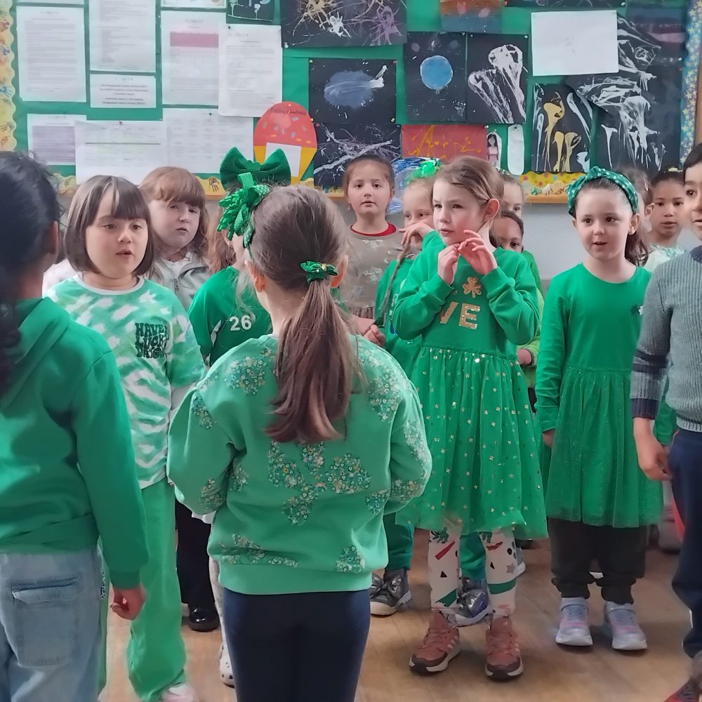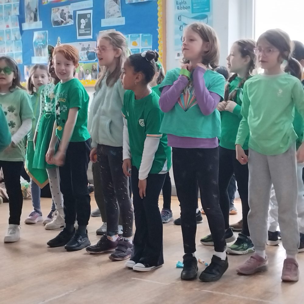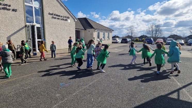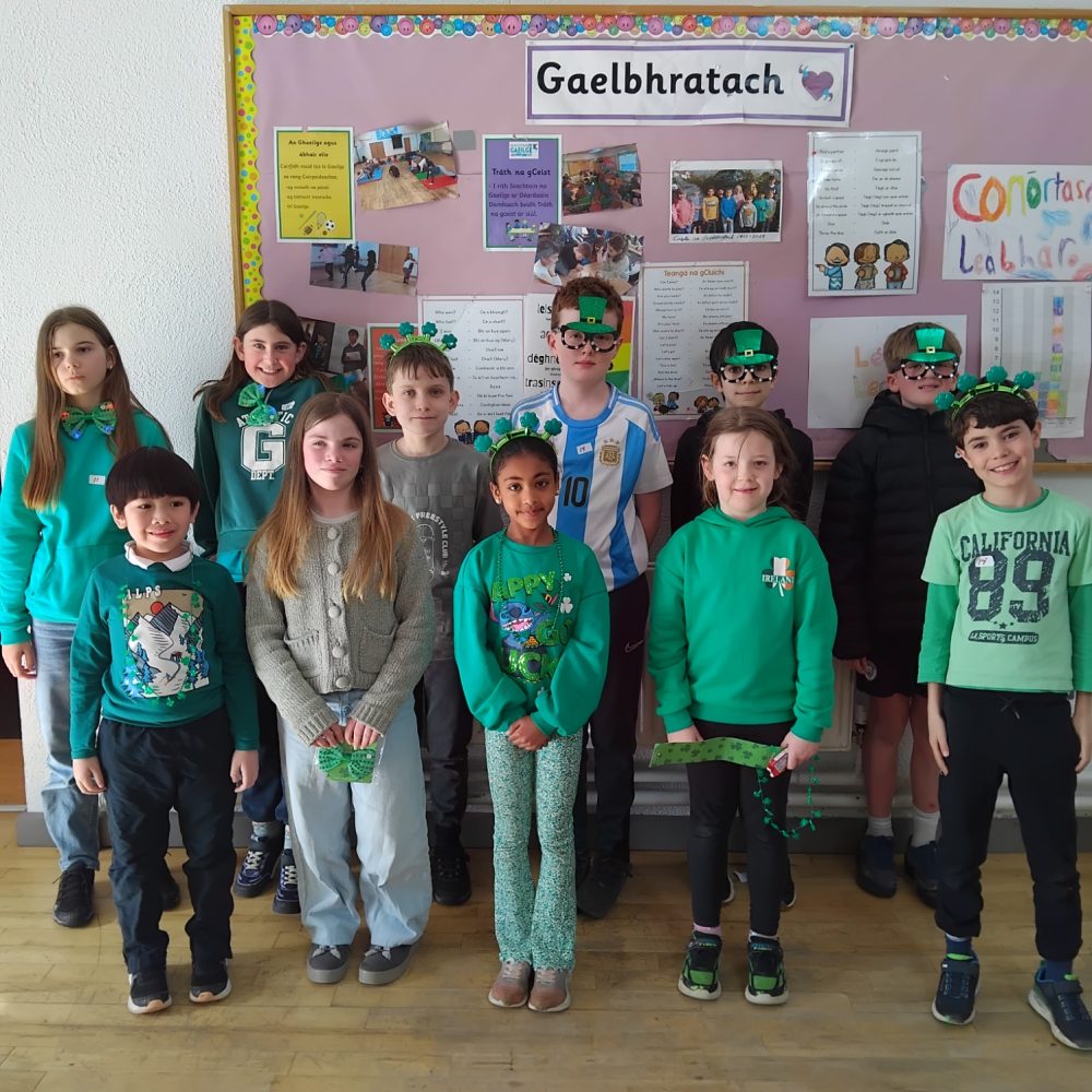 Cheiliúradh an scoil Seachtain na Gaeilge an tseachtain seo caite. Bhí gníomhaíochtaí iontacha ar siúl: ceachtanna corpoideachais trí mheán na Gaeilge do gach rang (cispheil agus peil Ghaelach) le Matt agus Fionnuala, tráth na gceist, tionól Gaeilge iontach, comórtas léitheoireachta agus dioscó sa chlós. (The school celebrated Seachtain na Gaeilge this past week. A lot of activities took place including PE lessons in Irish for every class – basketball and Gaelic football – with Matt and Fionnuala, a table quiz, a fantastic Irish assembly, the end of our Irish reading competition and a disco with music in Irish in the yard.)
