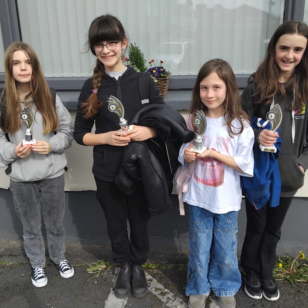This week teams from our school participated in two chess tournaments. The first was the Galway Shield Chess Competition. Two teams participated, and one of our teams came in first place in the shield division of the competition, beating 22 other teams. Today four children represented our school at a Girls’ Chess Competition, they came in 2nd Place and brought home trophies.
