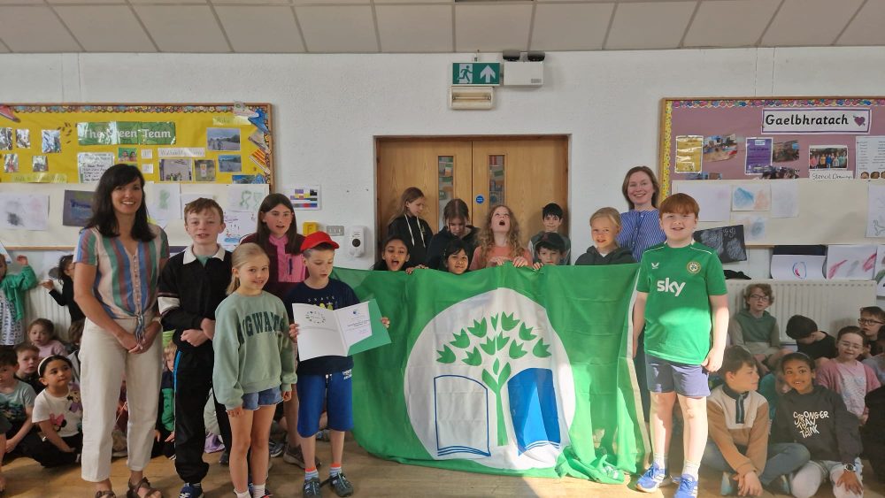 Congratulations to Sarah, Nora, the Green School Committee and everyone in our school community who have worked hard to achieve our third Green Flag on the theme of transport. Three children attended a special event where they were presented with the flag, and we celebrated the achievement at our recent whole-school assembly.