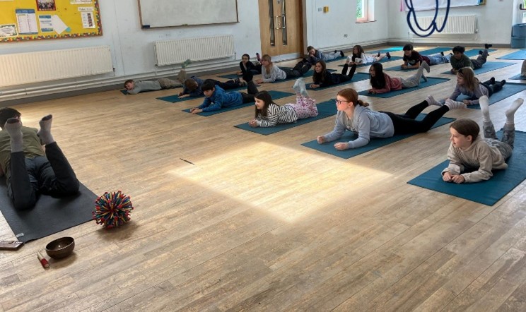 Tá ranganna Yóga le Ciarán ar siúl an mí seo. Tá na ranganna le Ciarán dátheangacha. Fuaireamar deontas beag ó Gael Linn agus míle buíochas chomh maith as an tachaíocht ón gCoiste Tuismitheoirí.