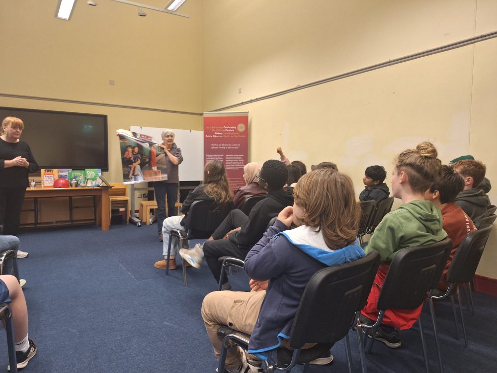 6th Class were invited to attend a Creative Writing Workshop in Westside Library as part of The Children’s Book Festival. The workshop was led by Patricia Forde, Laureate na nÓg and a Galway native, and Mary Murphy, celebrated author and illustrator. They prompted 6th class to create stories and characters based on objects and pictures. 6th class came up with some wonderful back stories and plots for the created characters – from possessed toys to kidnapped frogs and rich man redemption!