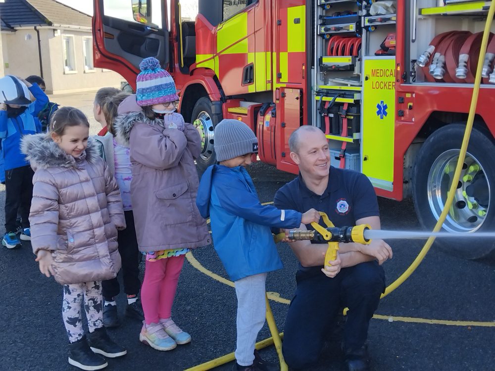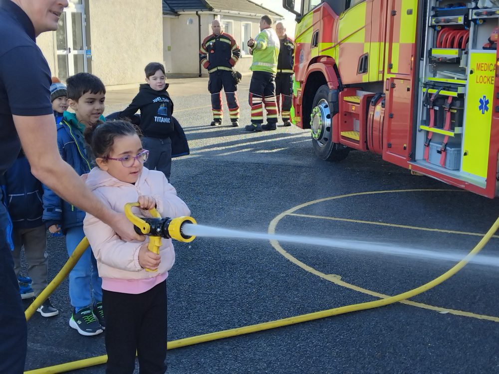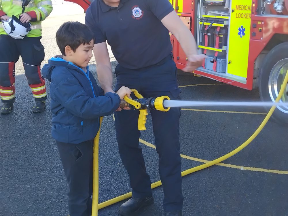 We recently had a surprise visit to the school by the fire brigade. Children got an opportunity to use the fire hose, climb into the engine cabin and meet with the firefighters.