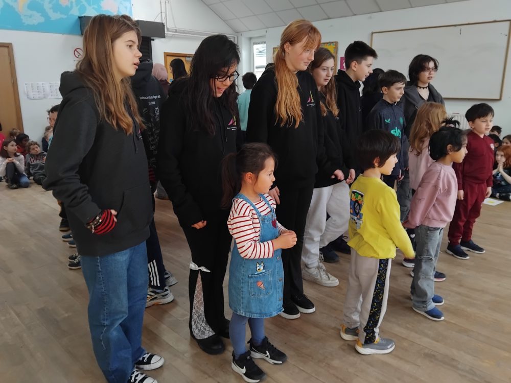 Sixth Class and Junior Infants performed a special song together at Friday’s assembly.