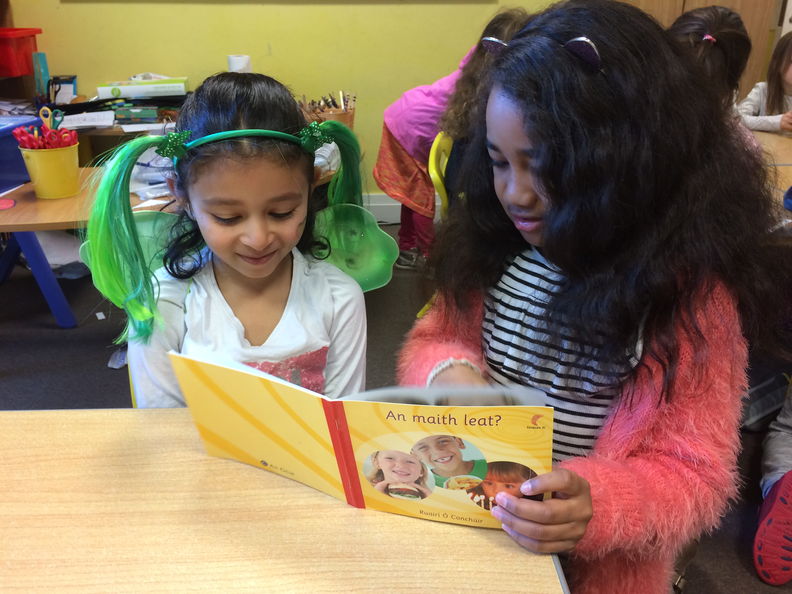 Cheiliúramar Seachtain na Gaeilge le himeachtaí iontacha an tseachtain seo caite. Thug an t-údar Caitríona Hastings cuairt ar an scoil chun a leabhar “Ó Chrann go Crann” a léamh. Bhí tráth na gceist spraoiúil againn. Léigh Rang a Dó leabhair Gaeilge leis na páistí sna ranganna eile. D’imir Rang a hAon agus Rang a Dó cluiche treodóireachta. Beidh Naíonáin Mhóra agus Rang a hAon ag cur cúpla dráma i láthair, Cinnín Óir agus na Trí Bhéar agus Jeaic agus an Gas Pónaire, an tseachtain seo chugainn. A thuismitheoirí, bígí linn an mhí seo chugainn nuair a thosóidh ranganna Gaeilge nua do thuismitheoirí.