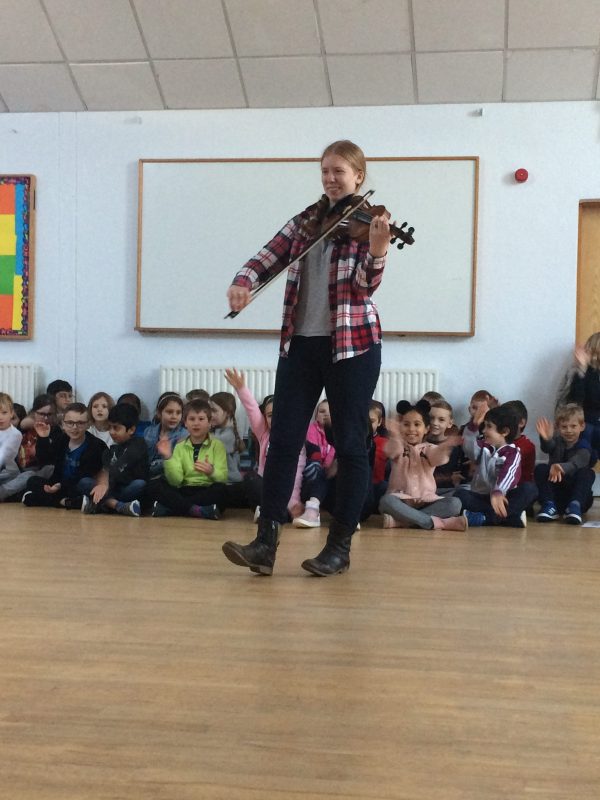 We said goodbye to Solveig, our student teacher in 3rd class, who has now returned to Minnesota to finish her last term of her teacher trainer. She shared her violin skills, including a beautiful solo and then a rousing rendition of Baby Shark, at our Friday assembly. We will miss her very much and wish her well in her future career.