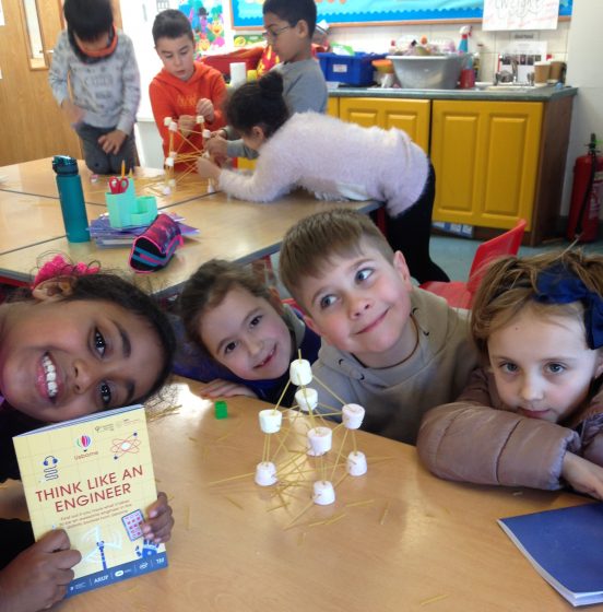 The trip to NUIG inspired the children to use their engineering skills in the classroom by building stable structures out of uncooked spaghetti and marshmallows.
