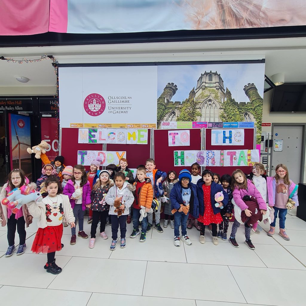The Junior Infants visited the Teddy Bear Hospital at the University of Galway last week. It was a great day out, and many thanks to the members of the Sláinte Society who coordinate this event. Several children were interviewed for radio and television, and our school briefly featured on the RTE News.