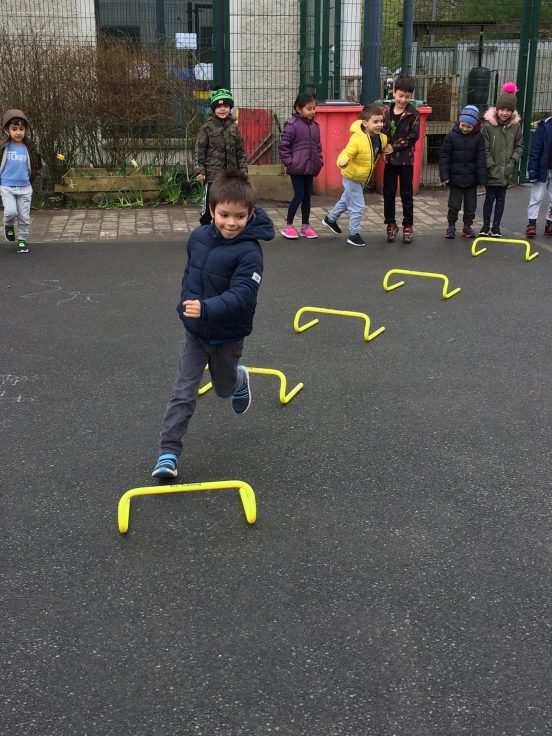 All the Junior and Senior Infants had great fun completing an obstacle course in the yard.