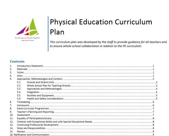 The staff have read and agreed a draft PE Curriculum Plan written by Vivienne. It is now ready to present to the Board of Management for ratification. It sets out learning goals, approaches and whole-school schemes to support lesson planning.