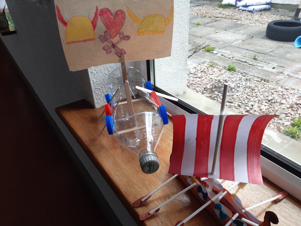 Classes are also used materials designated for recycling or the landfill to create art pieces like these impressive Viking long ships made by 3rd Class.