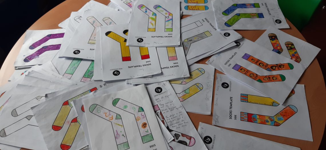 We are grateful to Joanna, of Irish Socksciety, for organising a fantastic design competition for our school community. Joanna first visited the school to explain her work as a socks designer. Each child then had the opportunity to design a sock that represented our school. It was a very touch challenge, but two overall winners were selected. The designs represent the ethos of our school as an inclusive place of learning. The winning designs were then produced, and the children in the winners’ classes received a pair of the socks. Many thanks to Irish Socksociety for this amazing experience.