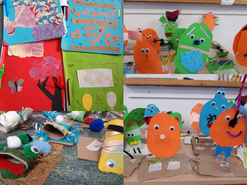 Kim worked with 1st, 2nd and 3rd Class through Zoom. They created nature journals and amazing creatures out of paper and wire.