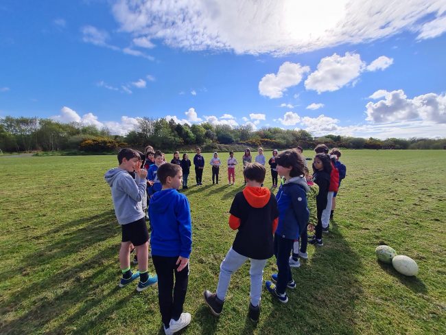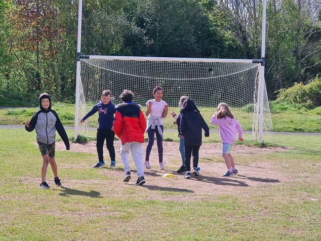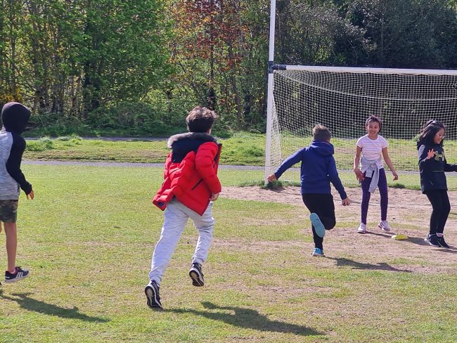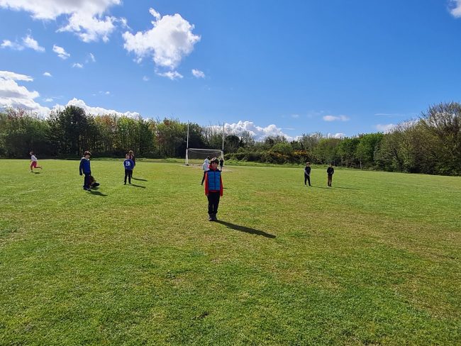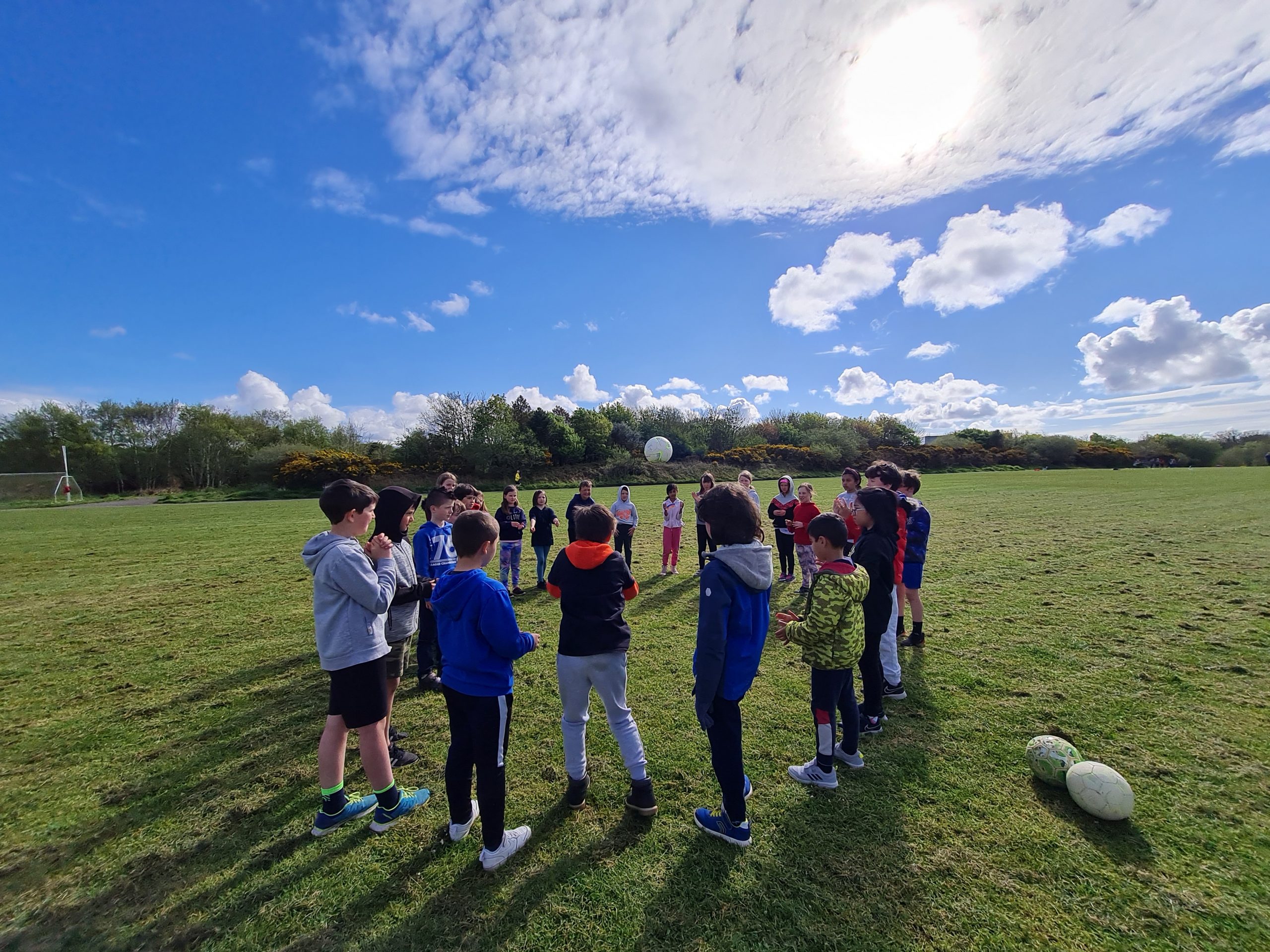 On this lovely sunny day Third class decided to play football while in Barna Woods / Park