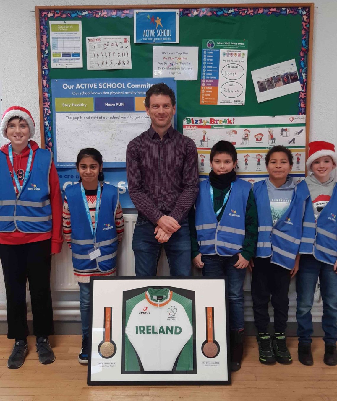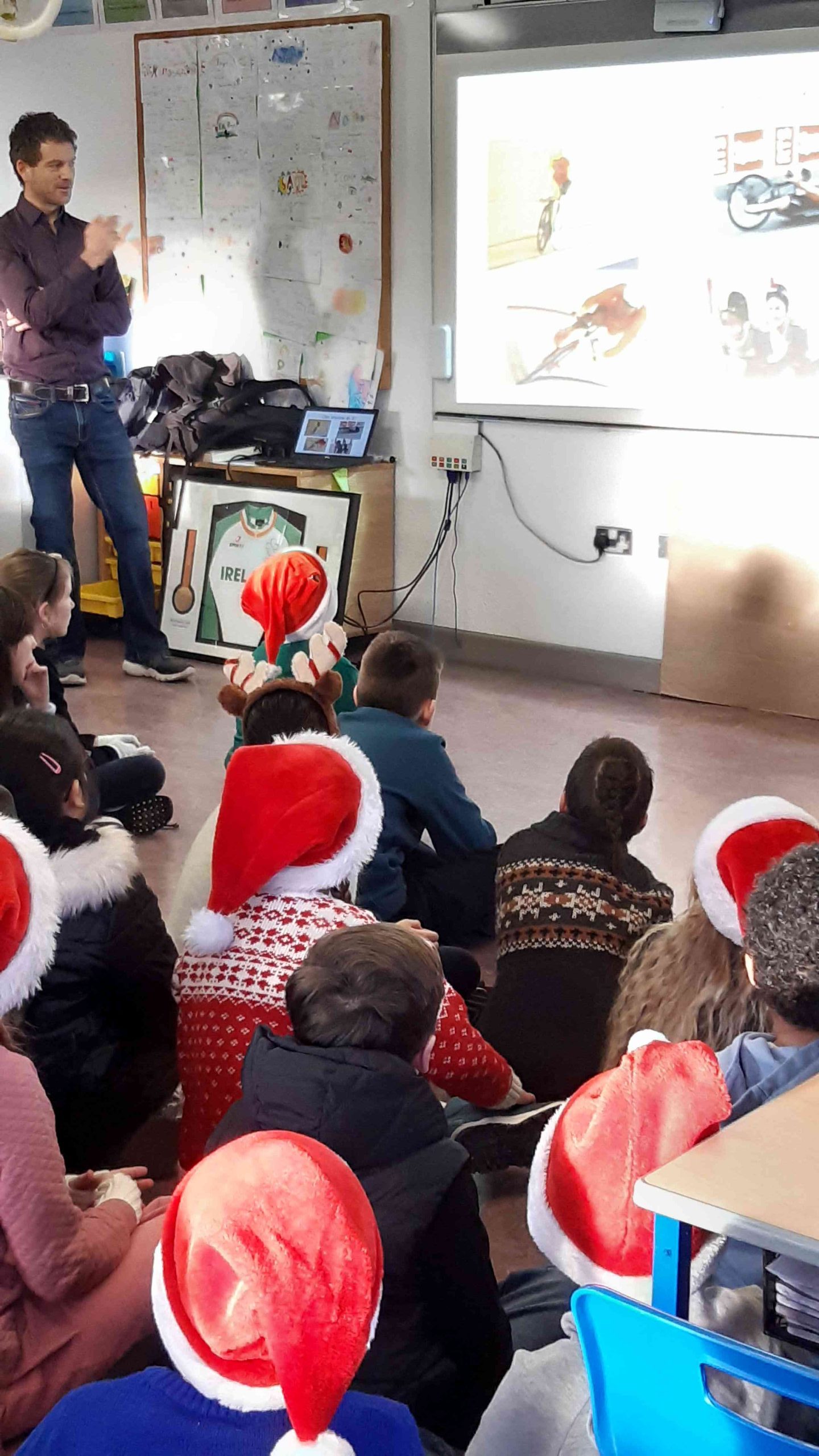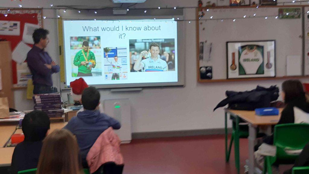 We were delighted to welcome Eoghan Clifford, a parent in our school who also was a gold medalist at the 2016 Rio Paralympics and a World Champion cyclist. He visited several of the classes to talk about his experiences, show his medals and winning jersey and speak about the links between science, maths and cycling. Eoghan told us about this competition career, particularly fascinating the classes with what it takes to compete is indoor cycling in a velodrome. The children had great questions and were impressed by his commitment as an athlete.